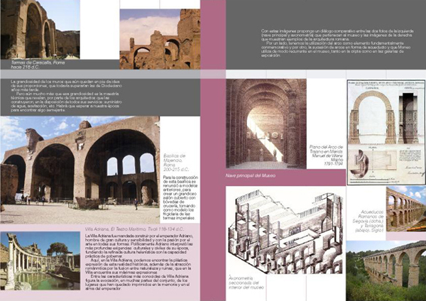La composición de las páginas sigue un estética "mosaico" inspirada en el tema del proyecto, el mundo romano. Los colores distinguen cada tema-capítulo y definen así la estética de todo el proyecto de comunicación.